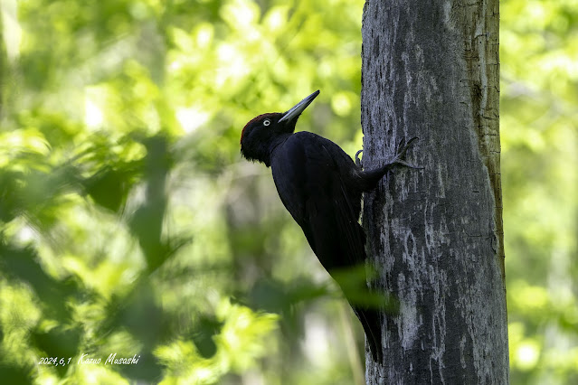 昨日のクマゲラの続きです。二か所目のクマゲラと同個体で、まだ若鳥だと思います。